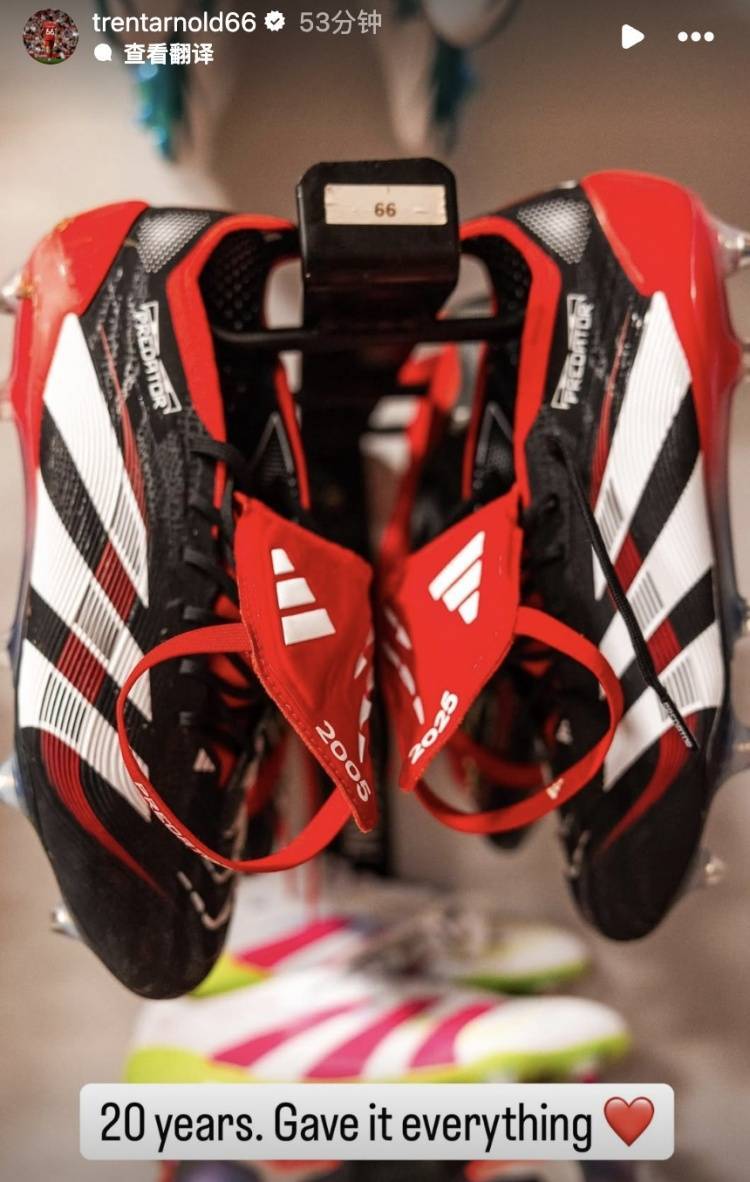 赛前,阿诺德更新社媒晒出自己的战靴并写道:“20年,已拼尽全力,最后一战!”